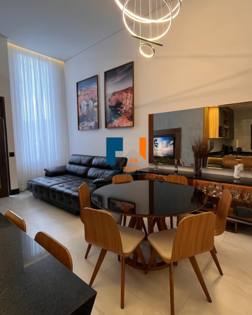 Sala de estar integrada com a sala de jantar.