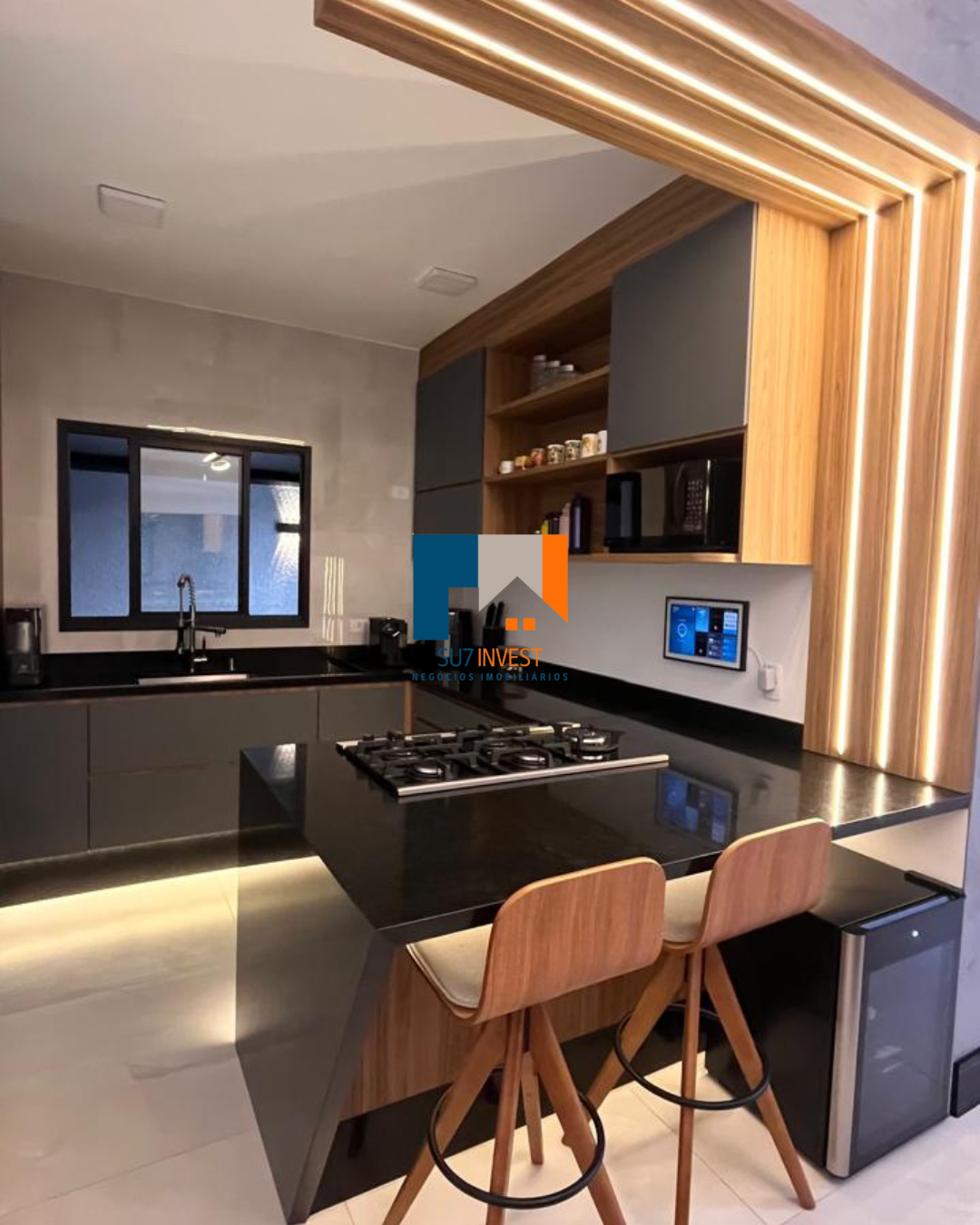Cozinha com móveis planejados.